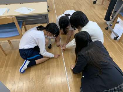 今までは,平均の求め方を考えてきましたが,今日はこれらを使って自分の歩幅を調べました。調べる前に予想をする子,グループで協力しながら調べる子など,子どもたちは興味津々に調べていました。