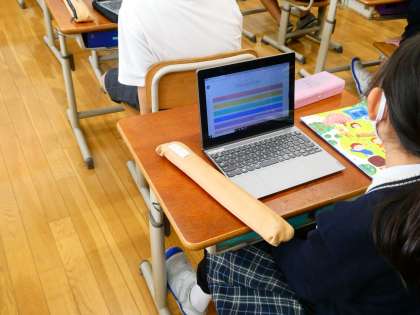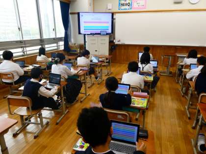 音楽科の学習では,GIGA端末を使って学習をしていました。