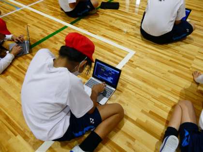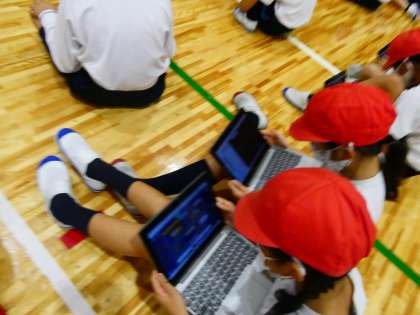 今日は,GIGA端末を使って友だちの動きを分析し,アドバイスをしました。自分ができていない技であっても,お手本の動画と友だちの動きを比べて友だちのできていないポイントを出し,アドバイスすることができていました。