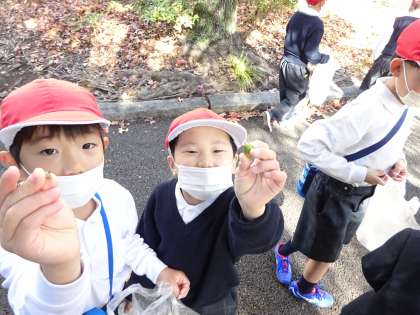 珍しいどんぐりや初めて見た木の実を見つけて