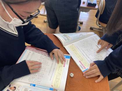 音楽の授業では,詩と音楽との結びつきに気を付けて,日本語の歌曲を鑑賞しました。今回学習した「待ちぼうけ」という楽曲は,中国の昔話をもとにつくられた曲です。歌詞を朗読し,主人公の気持ちが表れている部分を考えたり,旋律を歌って,音の上がり下がりを感じたり,プロの歌手の歌声を聴いて,どのような歌い方の工夫がされているか見つけ出したりしました。そして,歌詞と旋律が一体となって,曲想を生み出しているということや,歌詞の内容を理解したうえで表現を工夫することの大切さに気付けた1時間でした。