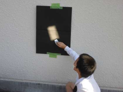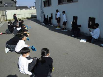 理科では,鏡ではね返した日光をたくさん集めると,明るさやあたたかさはどうなるのかを調べました。