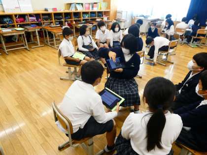 GIGA端末は毎日持ち帰って充電をしてくるように声掛けをしています。充電のし忘れ等ありましたら,声かけをお願いします。