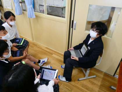 蓮花タイムの学習では,向島の災害についてまとめたものを発表しています。