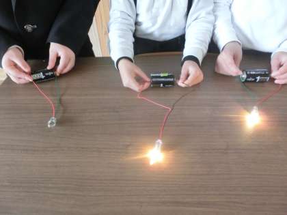 豆電球に明かりがついたときはみんな歓声をあげていました。