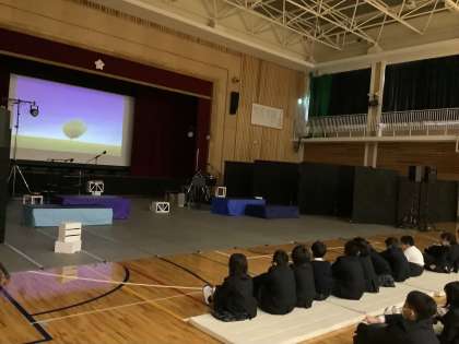 24日の3,4時限目に演劇鑑賞を行いました。「森が海をつくる」というお話で,主人公の犬「ジェイク」が海や川森の声を聴き,環境問題について考えるストーリーです。