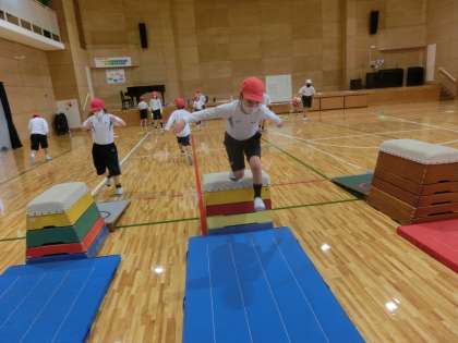 「とびばこ」の学習に意欲的な子どもたち,学習カードを見ながら「めあて」を決めて練習に取り組んでいます。単元の最後には学習の成果を発表する「とびばこ発表会」があります!自信をもって技を披露できるように,繰り返し練習しています。繰り返しの学習は子どもたちの安心と自信に繋がっているのだなと改めて感じる今日このごろです…。