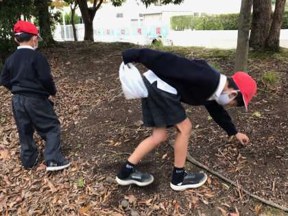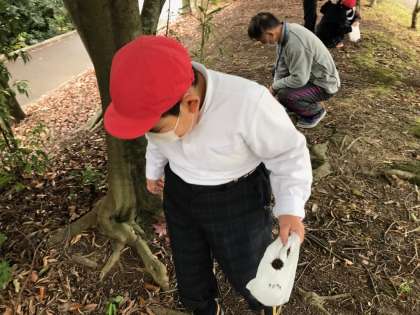 辺りにはどんぐりや落ち葉がいっぱい。