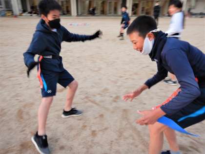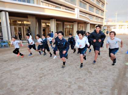 12月に入って朝晩の冷え込みも一層厳しくなってきましたが,5・6年生合同の『走ろう会』の取組みは今日も朝練から熱く行われました。写真は放課後のトレーニングの様子です。