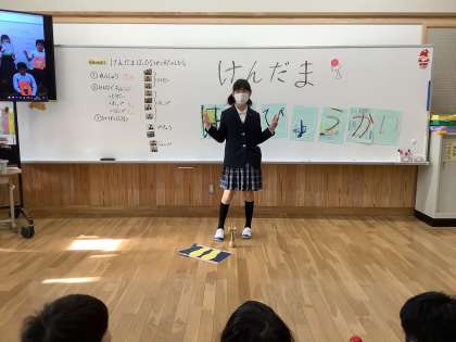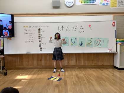 一人一人前に出て,けん玉の発表会をしました。