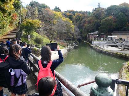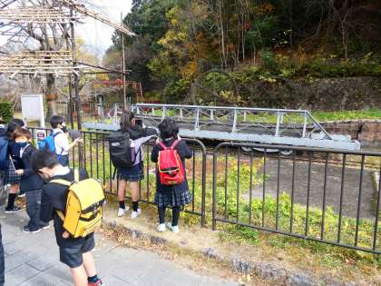 GIGA端末を使って見学の足跡を残していました。次の社会科の学習で見学して学んだことをまとめます。疏水の合流地点やインクラインの台車等,見たものを写真でとり,たくさん学んでくれたことだと思います。