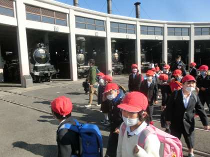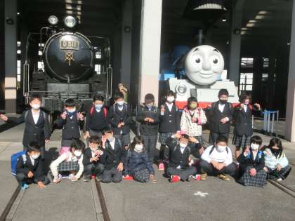「トーマス」と「デゴイチ」の前で集合写真を撮りました。