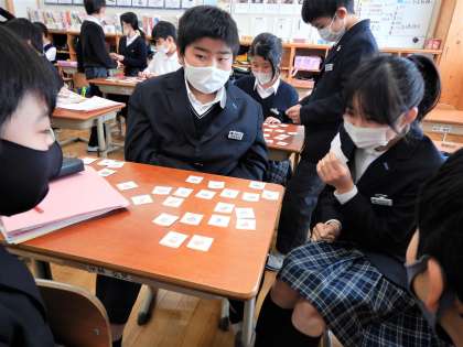 今日の学習では,先生や友だちに食べたいものを聞いて順番どおりに料理のカードを並べたり,料理カードを使ってバランスのよい献立となるように考えて,料理の注文をし合ったりしました。今日も楽しく学べましたね!