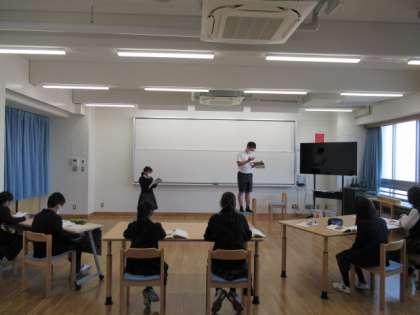 「伝統文化を楽しもう」の単元では,狂言「柿山伏」の音読劇に挑戦しました。