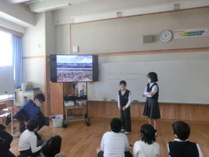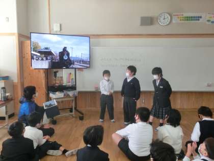 どんなことをしたのか,グループごとにGIGAタブレットで撮った写真を見ながら発表しました。