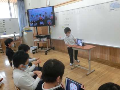 フルーツの種類と数を英語で発表することができました。