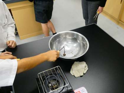 理科の学習では,金属を温めたり冷やしたりするとどのなるのか実験をしました。予想したことを実験で確かめ,結果から考えられることをまとめました。実験中は,「おお〜」「すごい」と体験したことを素直に声に出していました。