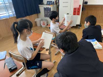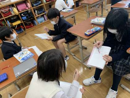 全体の前ではなかなか勇気が出ない子も,ペアではがんばって説明をしています。