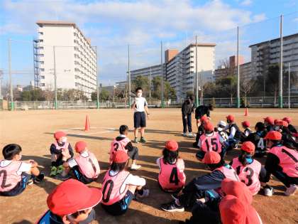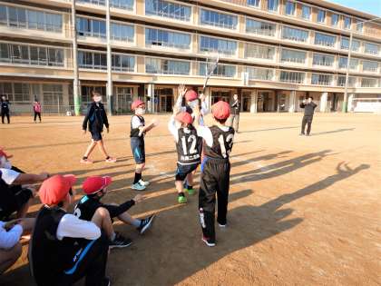 普段の体育でやっているベースボールとよく似たスポーツだったことと,高校生のお兄さん・お姉さんが優しく丁寧に教えてくださったこともあり,思い切り楽しんでプレーすることが出来ました。ワクワクの体験ができましたね!