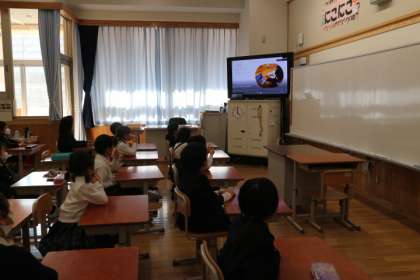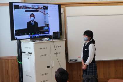 Zoom配信で生徒会の司会のもと,始まりました。生徒たちは教室で視聴し,異学年で感想を交流することができました。