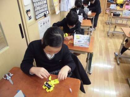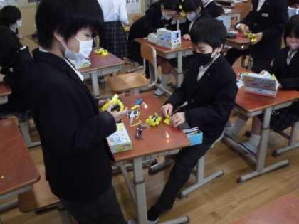 導線をむいたり,細かい作業に苦戦したりつつも,友達と協力しながら完成させることができました。