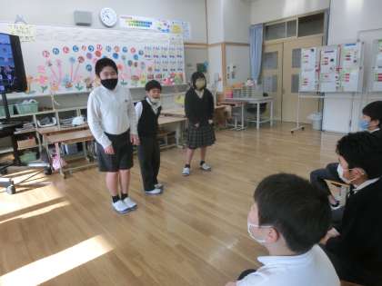 音読の授業では「くじらぐも」チームと,「ガラスめだまときんのつののヤギ」チームの2つに分かれて学習を行いました。どちらのグループも,発表会に向けて読み方や表現の工夫を行いながら練習に取り組みました。