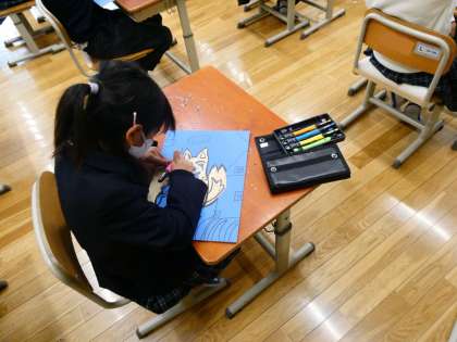 4年生の図画工作科では,彫刻刀で版木を彫り進めています。前回の学習で学んだ彫刻刀の特徴を意識しながら,真剣に彫刻刀を選んでいる姿が見られていました。