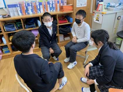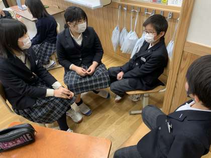 冬休みが終わってから三連休がありましたが,少しずつ生活リズムが戻ってきました。写真は,三学期初日。冬休みの出来事を話している様子です。家族でゆっくり過ごしたことや初詣に行ったこと,お年玉や新年の目標など,話が尽きませんでしたね。