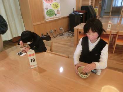 学習の振り返りでは「お茶が少し苦かったけど,ゆっくり飲むとおいしかったです」「お作法を知れてよかったです」「また茶道をやってみたいです」など,積極的に手をあげて発表していました。