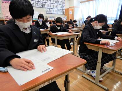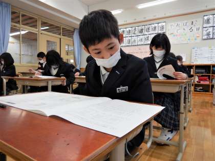 1日目の今日の教科は理科と社会でした。ピリリとした良い緊張感のもと各クラス,テストに挑むことができていましたね。2日目の明日は国語と算数です。がんばりましょう!