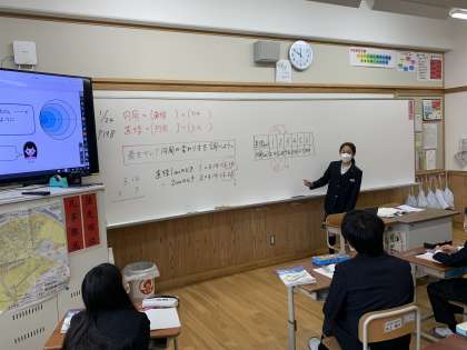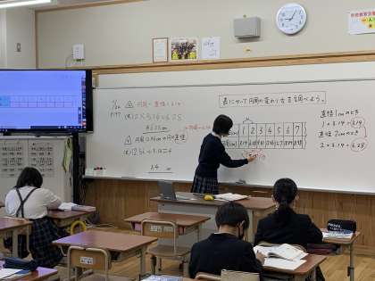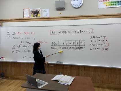 円周や円の直径の求め方を学習し,今回は円周と直径は比例しているかを表を使って調べました。1学期と比べると,表の見方が多様になってきました。表にかくということは,きまりを見つけるということも,子どもたちから気付き,色々なことを発見してくれました。学習してきたことが生きてます。立派な姿でした。