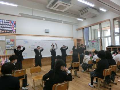 音楽に合わせて体を動かしながら英語の単語を覚えています。