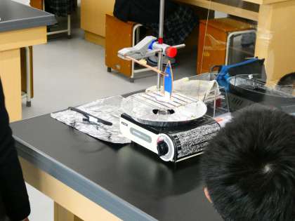 理科の学習では,「もののあたたまり方」について学習をしています。今日は理科室で金属はどのようにあたたまるのか,実験の方法を確認して,金属の棒や板を熱して学習を進めました。