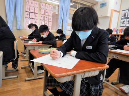 今日は,これまでの学習内容を動画で確認をした後,小テストに取り組みました。みんなとても真剣な表情ですね。