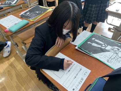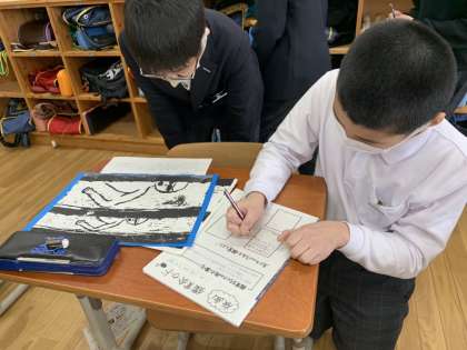 「顔の表情から,真剣さが伝わってくるなあ。」など,友達の作品から感じたことを,これからの自分の学びに生かそうとする姿に感心しました。