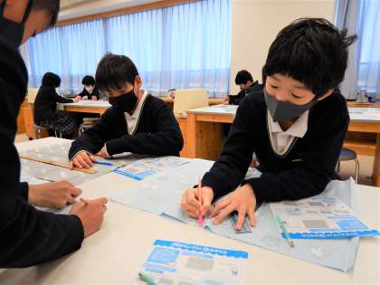 今日は,ランチョンマットの布の裏にチャコペンを使ってしるしをつける作業をしました。先生の説明を真剣に聞きながら取り組んでいました。