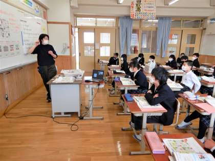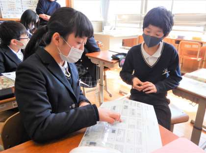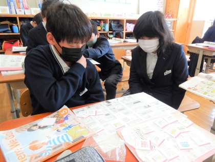 今日の英語科『Where is the gym?』の学習では,次回の“自分たちで考えた町の道案内をする”という単元のゴールに向けて,それぞれがオリジナルの町を考え,道案内の練習をしました。