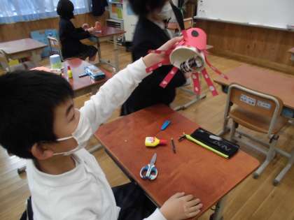 壊れかけた仕組みを,友達と相談しながら直す姿もあり,考えながら作り上げることができました。