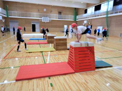 この単元では,開脚跳びやかかえこみ跳びといった切り返し系や,台上前転などといった回転系の基本的な技をどんどん習得していってもらいたいと思います。さあ,積極的に練習していきましょう!