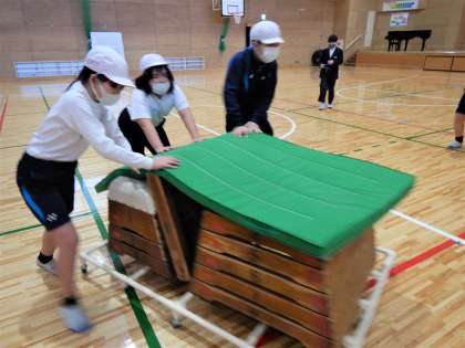体育では『とび箱運動』の学習が始まりました。今日は,初めのオリエンテーションと今できる技の確認をしました。
