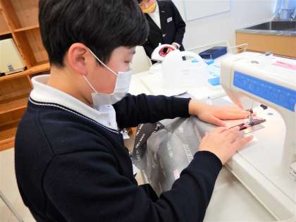 今日は,ランチョンマットの端を,三つ折りにして,ミシンで縫うという作業をしました。友だち同士でもアドバイスしながら,仲良く取り組んでいました。