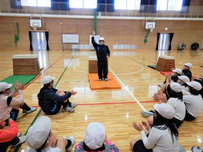 今日の学習では,初めにとび箱運動の基本となる動きを再確認し,そこからは,それぞれの目標の達成に向かって練習をしました。授業でも言いましたが,「数をやって身体で覚える」「勇気を出す」を大切に,がんばっていきましょう!