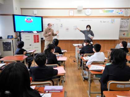 今日は,ALTの先生も来てくださり,職業や人やものを紹介する表現について教えてもらいました。