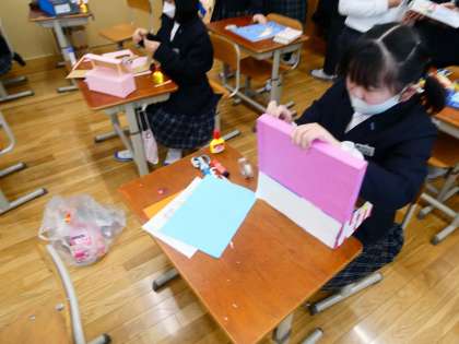 図画工作科の学習では,おもしろボックスの学習をしています。