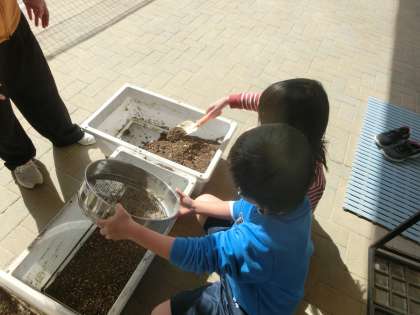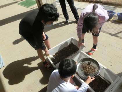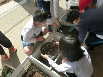 今年度も畑やプランターでたくさんの野菜を育て,おいしく食べることができました。野菜の成長をとても楽しみにしていた子どもたちは「来年もたくさん野菜を収穫したい!」ということで「土づくり」に取り組んでいます。「おいしい野菜をたくさん収穫するためには良い土が大切なんだよ」という話をきいて「がんばるぞ!」と意欲的に取り組んでいました。