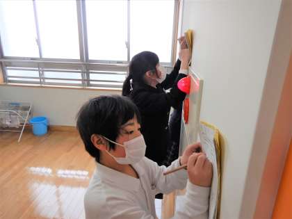 今日の蓮花タイムの学習では,感染症対策のために残念ながら中止となってしまった『みんなで協力!町ピカピカプロジェクト!』に代わるプランの『みんなで協力!向島秀蓮ピカピカプロジェクト!』の準備を進めました。