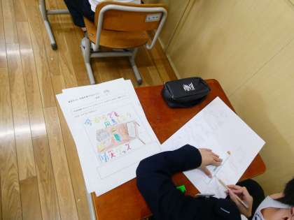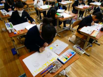 伝えたいことを考え,その思いが伝わるようなポスターが完成するように考えています。