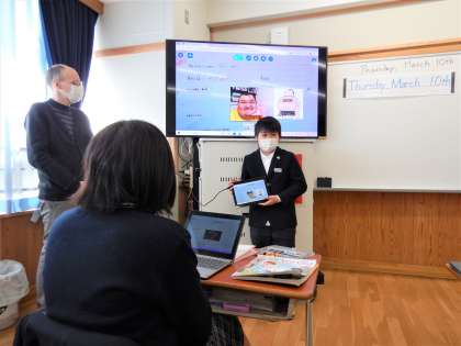 また,授業の終盤では,今年一年間の英語の学習のおさらいとふり返りを,ALTの先生と一緒に行いました。あっという間の一年間でしたが,楽しみながらたくさん学ぶことができましたね!