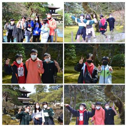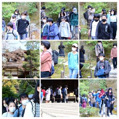 銀閣寺の見学の様子です。バスガイドさんのクイズにも結構答えられていました。しっかり歴史の知識もついていることに感心しました。