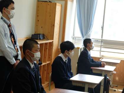 今日から9年生の1年間がスタートです。最高学年の9年生。凛々しい表情で始業式の話を聞く姿にも,学活で担任の先生からのお話を真剣に聞く表情にも気合いがみなぎっていました。良い1年になりそうです。